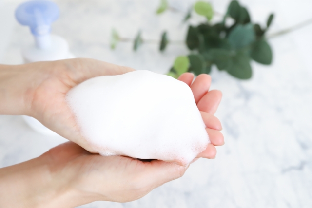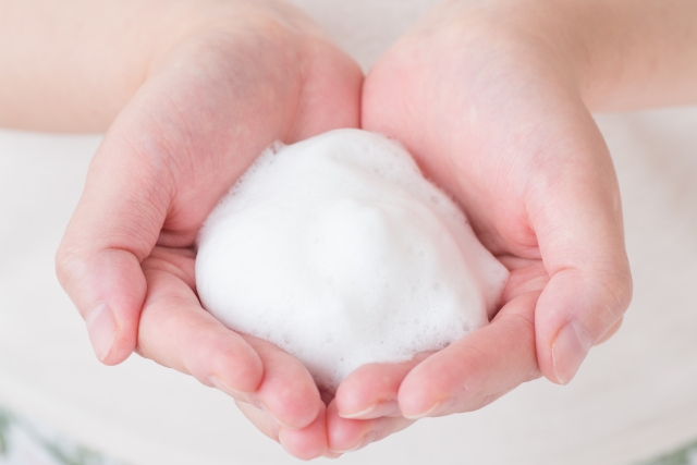 石けんを直接肌にこするのではなく、たっぷりの泡をのせて洗うのが効果を高めるコツです。